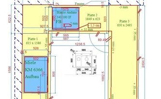 Unsere Kunden aus Overath bei Bergisch Gladbach haben den Dekton Sirius in 2 cm Stärke für die drei Arbeitsplatten ausgesucht. Diese wurden auf die U-förmige Küche montiert. Die erste Platte hat die Maße 158,6 x 61,5 cm, die zweite 184,9 x 62,3 cm und die dritte 249,5 x 65,0 cm.