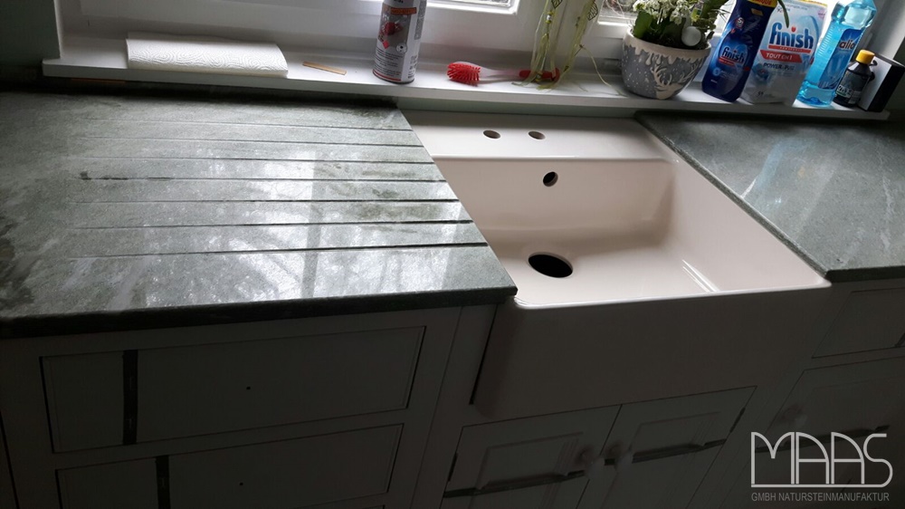 Lieferung: Granit Arbeitsplatten Andeer und Granit Wischleisten Verde Spluga