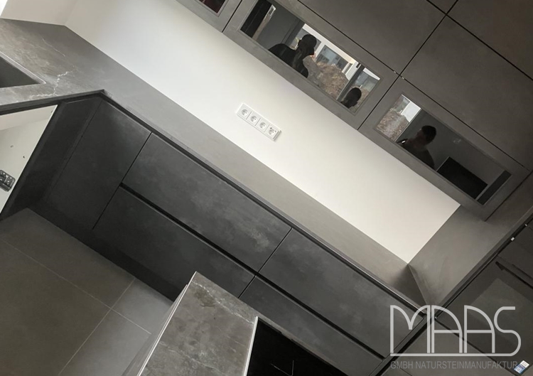 In Magdeburg entstand eine moderne Küche, die durch ihre schlichte Eleganz und die Verwendung edler Materialien überzeugt. Zum Einsatz kamen 2,0 cm starke Arbeitsplatten aus Dekton Laos, einem dunklen, matten Material mit industriellem Charakter. Die Oberfläche in UltraMatt sorgt für eine samtige Haptik und ein besonders hochwertiges Erscheinungsbild. Subtile, warme Maserungen verleihen der dunklen Anthrazitfarbe zusätzliche Tiefe und Lebendigkeit.